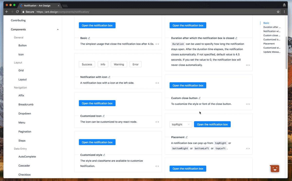 A general rule we should follow is the notification area is away from the navigation area. On the web, notifications could utilize the four corners of the screen, which are peripheral display areas for faster scanning and reading. If a notification includes call-to-actions like a "confirm" or a "close" button, positioning the notification at the corner of the screen shortens the travel time of a mouse cursor and makes the notification easy to dismiss manually.